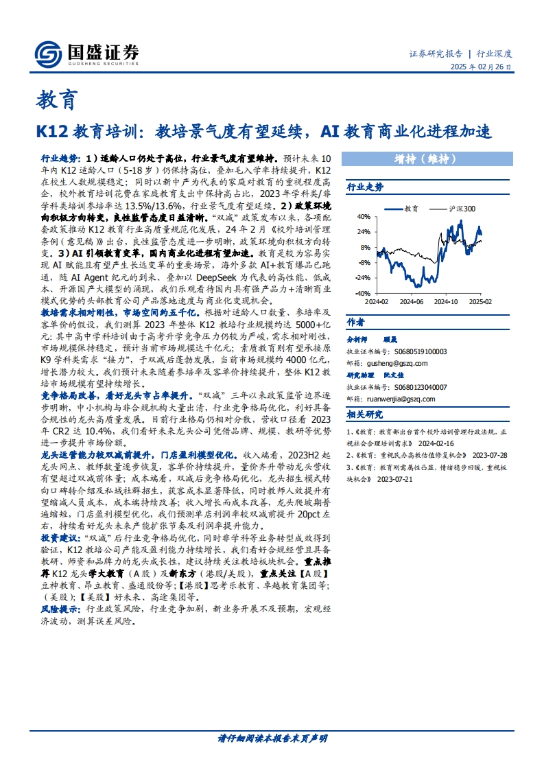 K12教育培训:教培景气度有望延续,AI教育商业化进程加速
