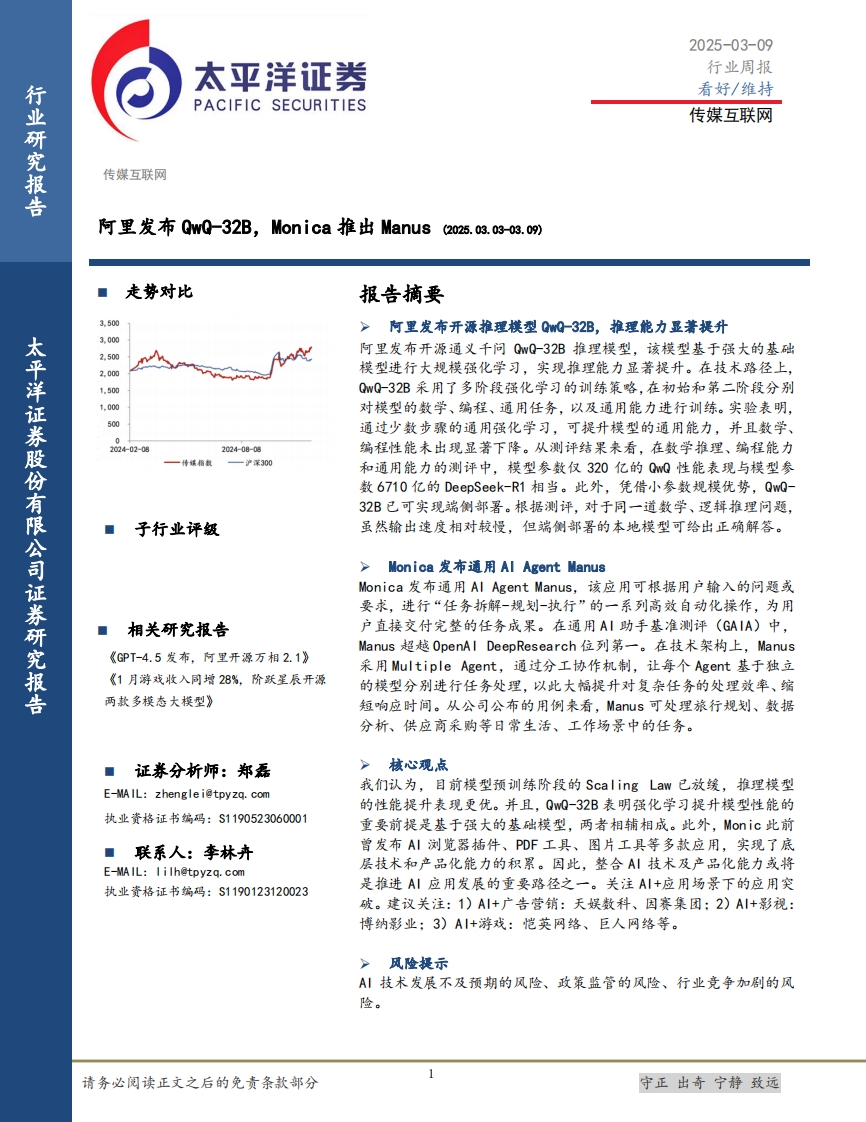 2025-03-10-太平洋-传媒互联网行业周报:阿里发布QwQ-32B,Monica推出Manus