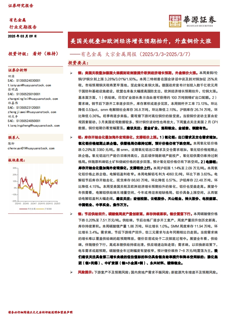 2025-03-09-华源证券--有色金属大宗金属周报:美国关税叠加欧洲经济增长预期抬升,外盘铜价大涨