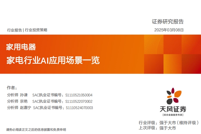 2025-03-09-天风证券--家用电器行业投资策略:家电行业AI应用场景一览