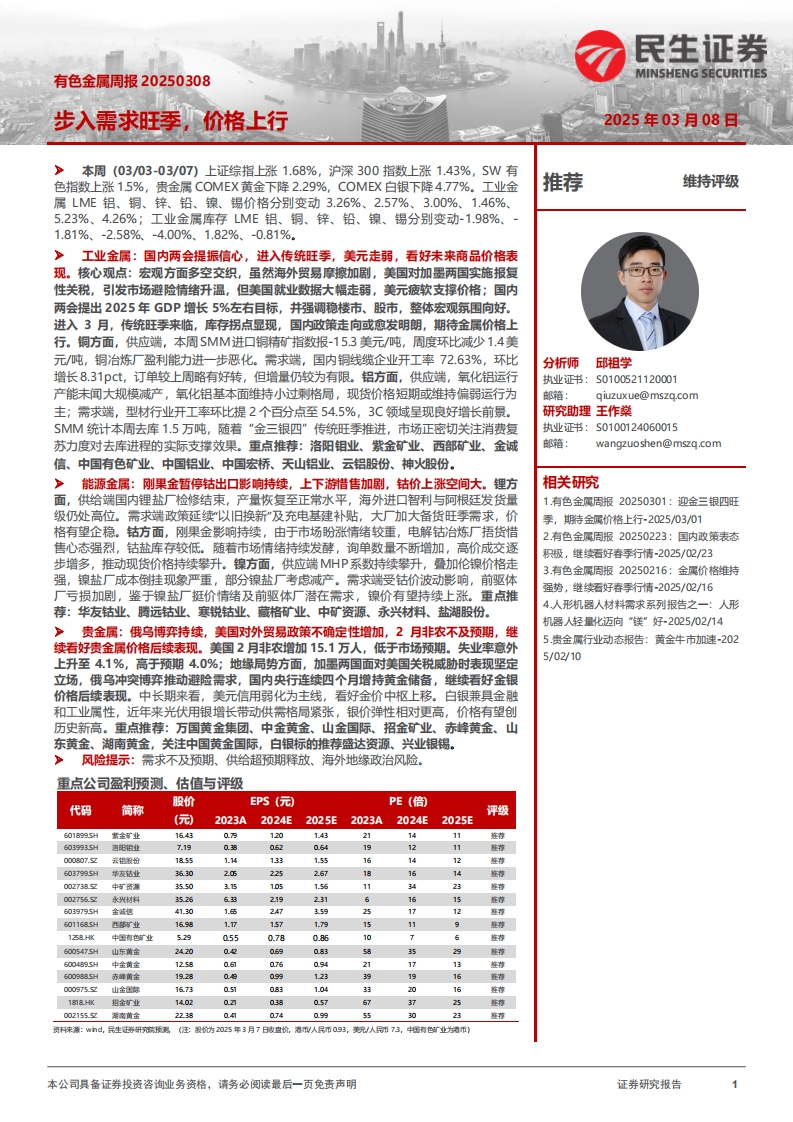 2025-03-09-民生证券-有色金属周报:步入需求旺季,价格上行
