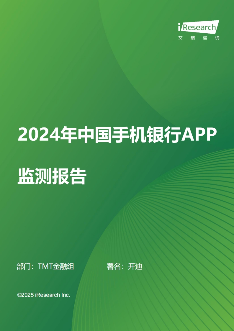 艾瑞咨询:2024年中国手机银行APP监测报告