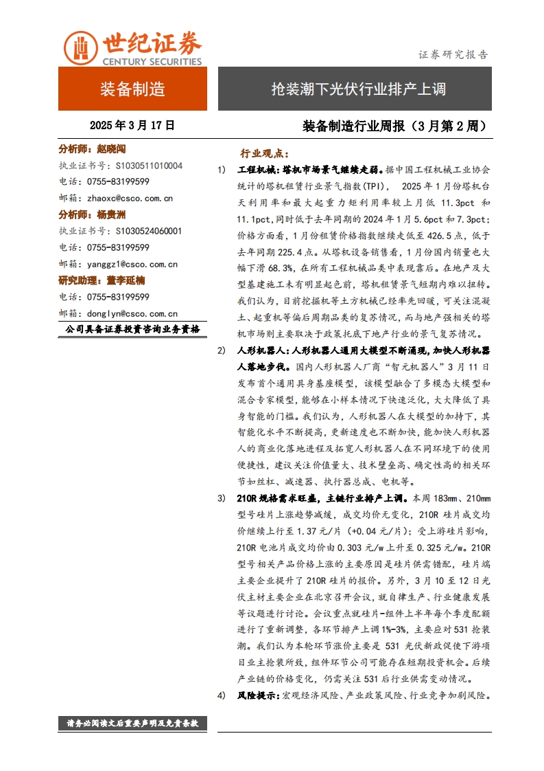 2025-03-17-世纪证券--装备制造行业周报(3月第2周):抢装潮下光伏行业排产上调