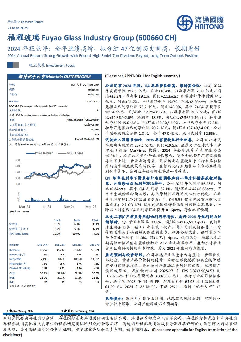 2025-03-21-海通国际-福耀玻璃-2024年报点评:全年业绩高增,拟分红47亿创历史新高,长期看好