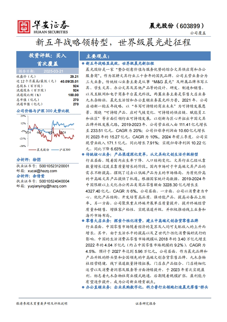 2025-03-24-华安证券-晨光股份-新五年战略领转型,世界级晨光赴征程