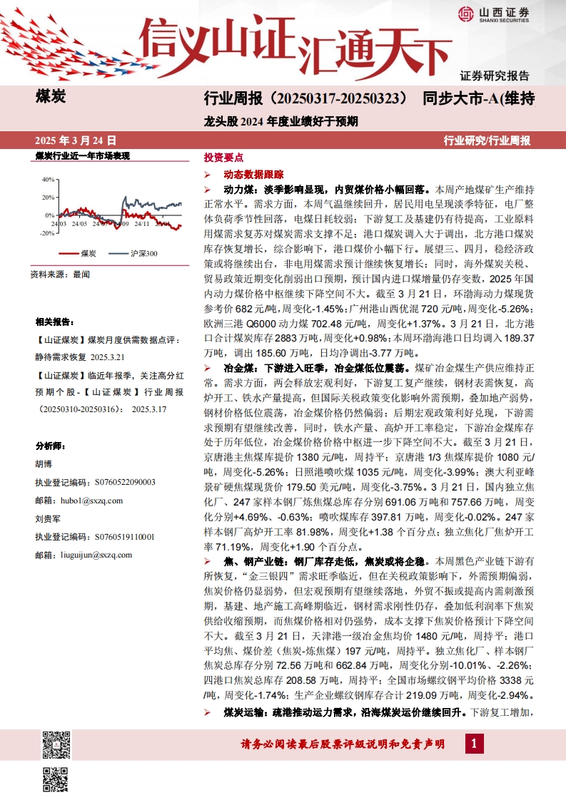 2025-03-24-山西证券--煤炭行业周报:龙头股2024年度业绩好于预期