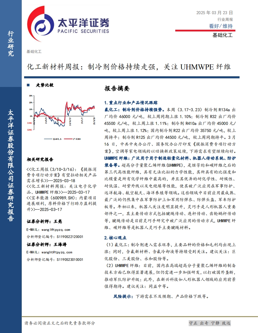 2025-03-24-太平洋--化工新材料周报:制冷剂价格持续走强,关注UHMWPE纤维