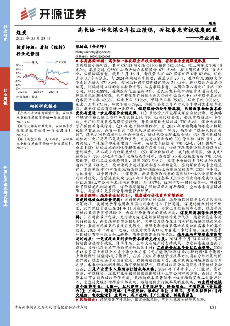 2025-03-23-开源证券--煤炭行业周报:高长协一体化煤企年报业绩稳,否极泰来重视煤炭配置行业周报