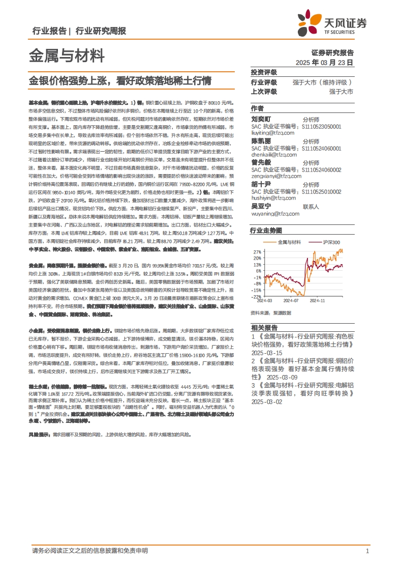 2025-03-23-天风证券-金属与材料行业研究周报:金银价格强势上涨,看好政策落地稀土行情