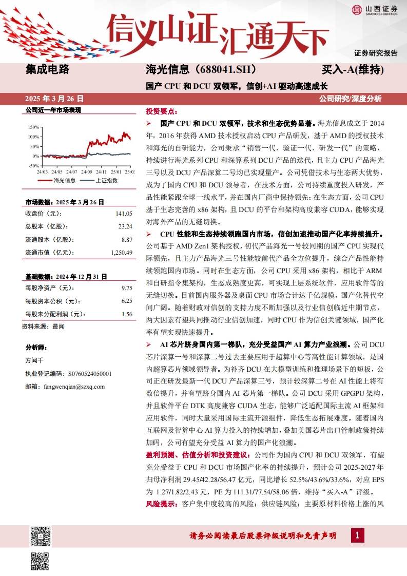 2025-03-26-山西证券-海光信息-国产CPU和DCU双领军,信创+AI驱动高速成长