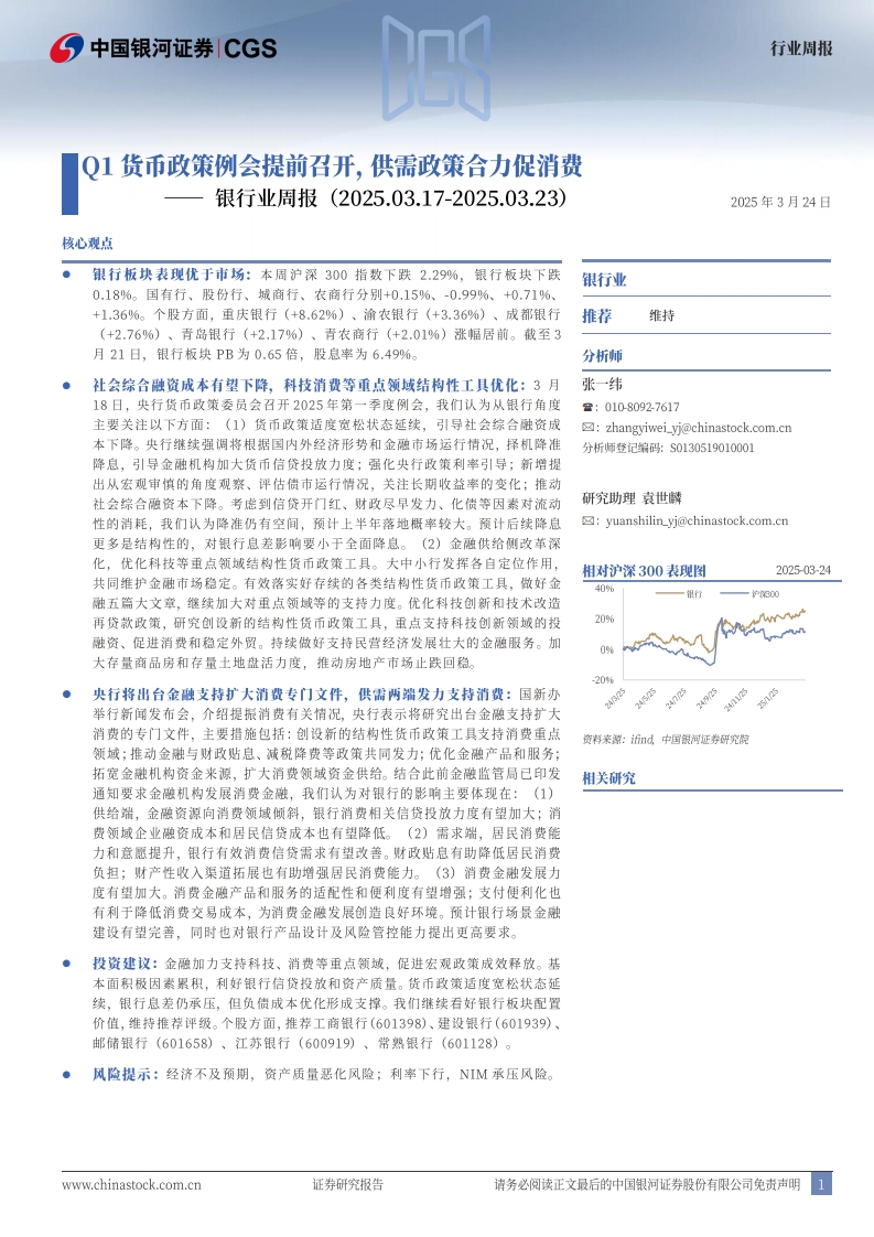 2025-03-26-中国银河--银行业周报:Q1货币政策例会提前召开,供需政策合力促消费