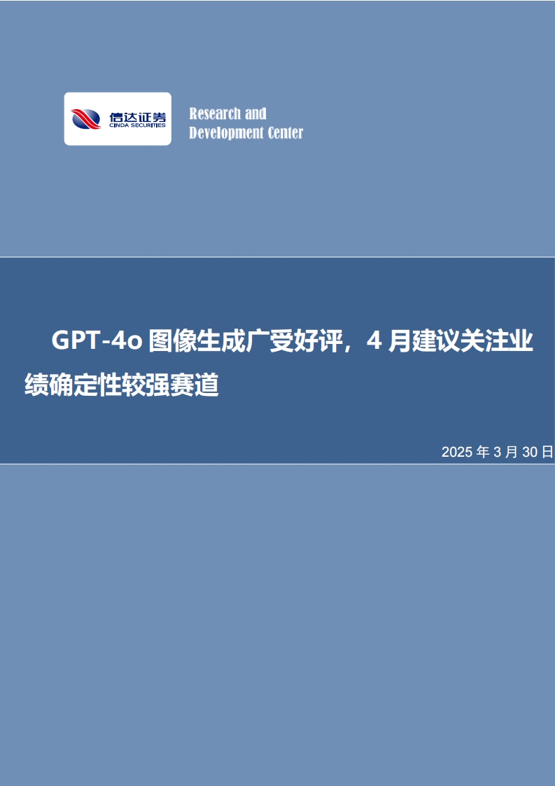 2025-03-30-信达证券--GPT-4o图像生成广受好评,4月建议关注业绩确定性较强赛道