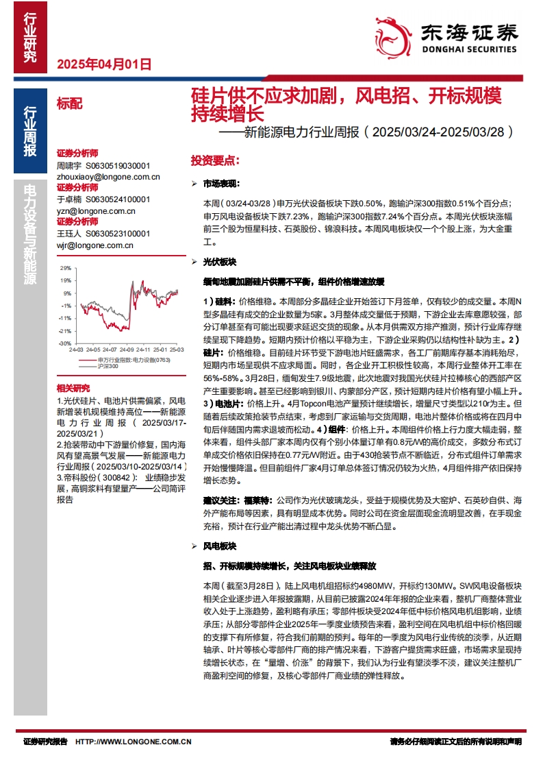 2025-04-01-东海证券--新能源电力行业周报:硅片供不应求加剧,风电招、开标规模持续增长