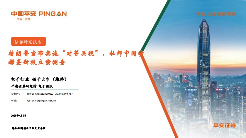 2025-04-07-平安证券--电子行业:特朗普宣布实施“对等关税”,杜邦中国涉嫌垄断被立案调查