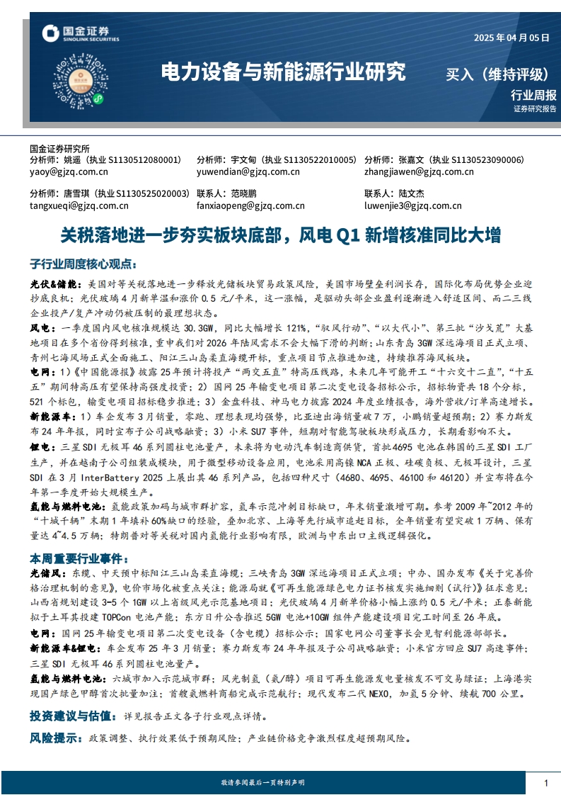 2025-04-06-国金证券--电力设备与新能源行业周报:关税落地进一步夯实板块底部,风电Q1新增核准同比大增