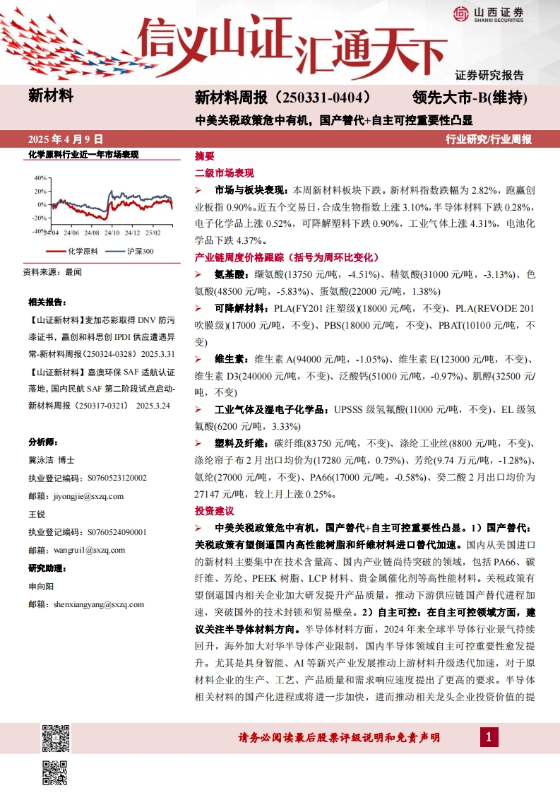2025-04-09-山西证券--新材料周报:中美关税政策危中有机,国产替代+自主可控重要性凸显