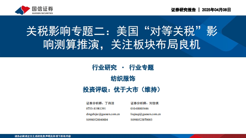 2025-04-09-国信证券--纺织服饰行业关税影响专题二:美国“对等关税”影响测算推演,关注板块布局良机