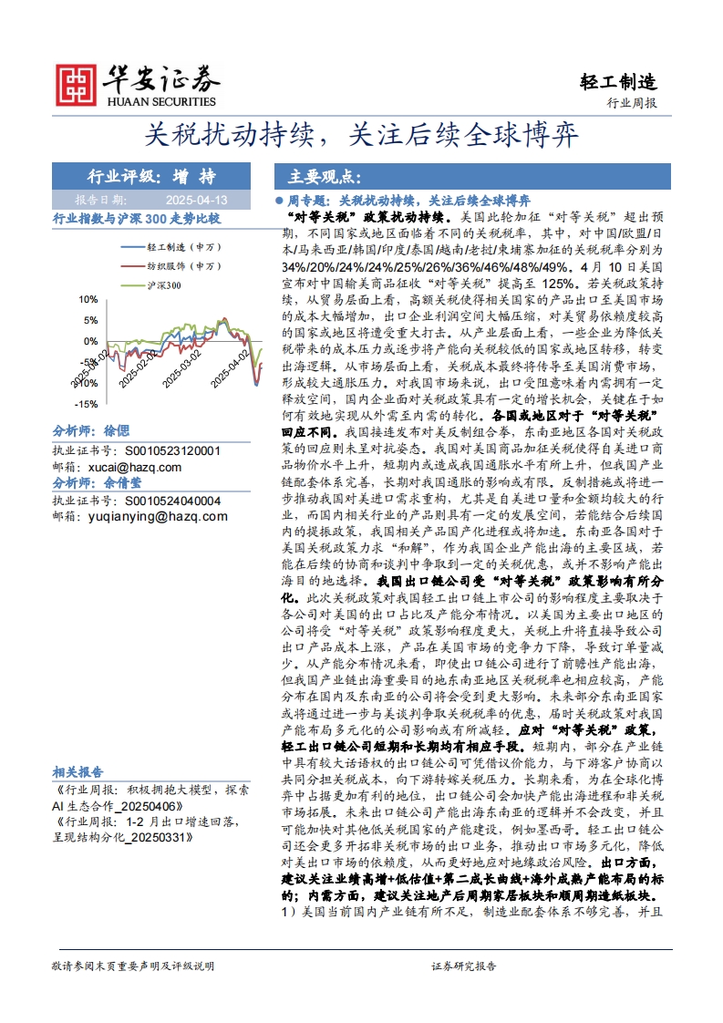 2025-04-14-华安证券--轻工制造行业周报:关税扰动持续,关注后续全球博弈
