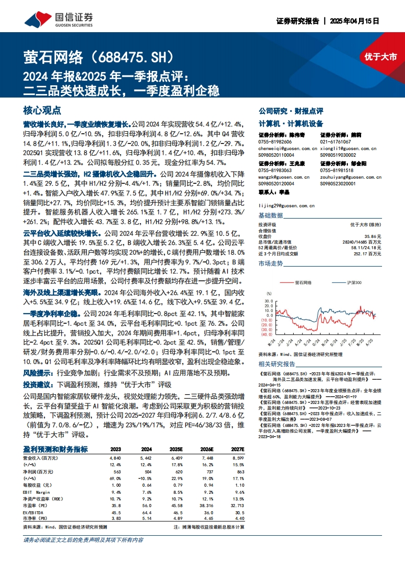 2025-04-15-国信证券-萤石网络-2024年报&2025年一季报点评:二三品类快速成长,一季度盈利企稳