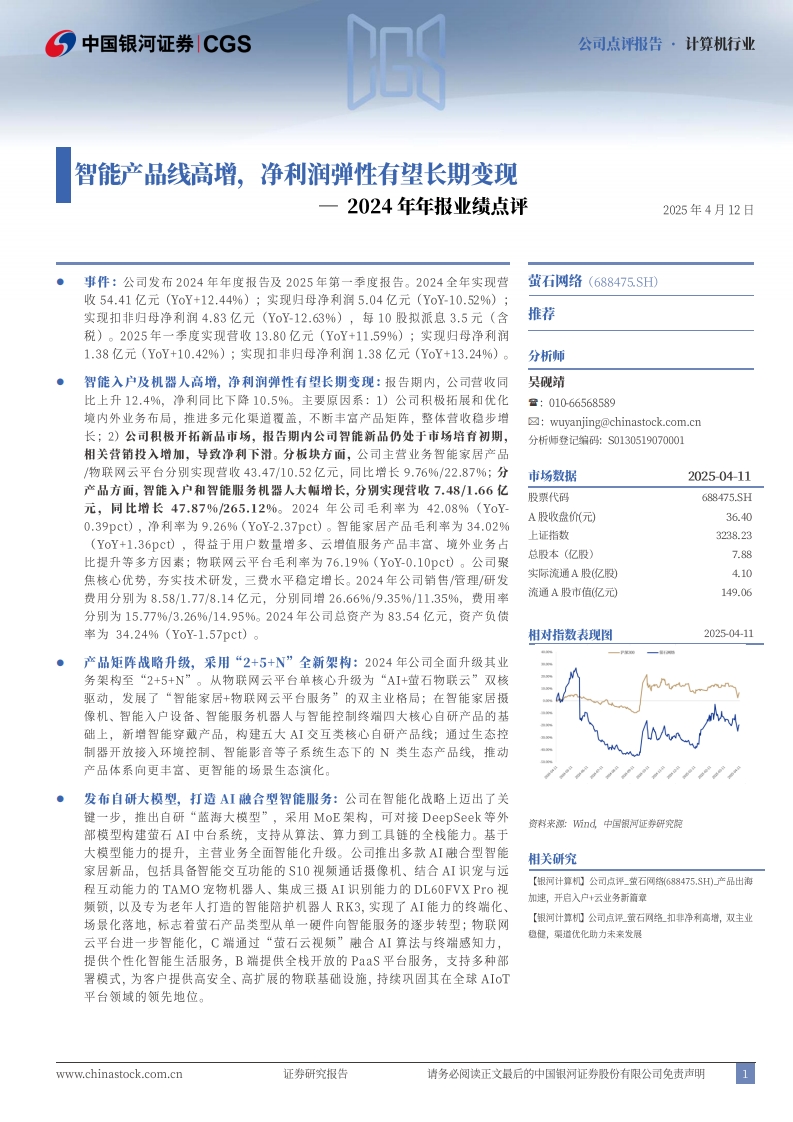 2025-04-15-中国银河-萤石网络-2024年年报业绩点评:智能产品线高增,净利润弹性有望长期变现