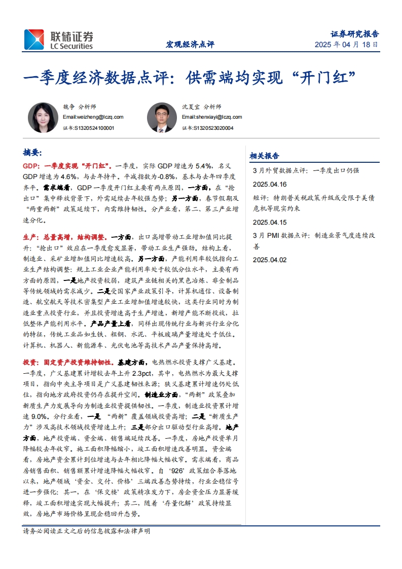 2025-04-18-联储证券-一季度经济数据点评:供需端均实现“开门红”