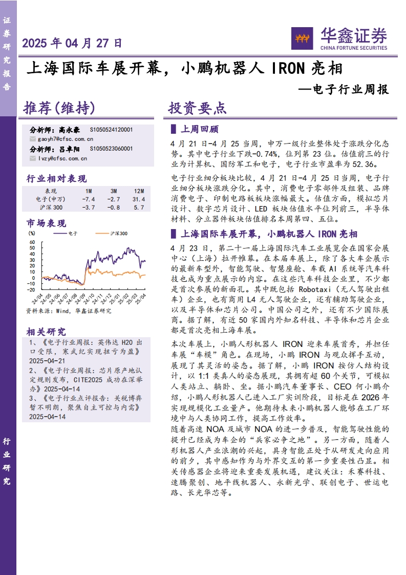 2025-04-28-华鑫证券--电子行业周报:上海国际车展开幕,小鹏机器人IRON亮相