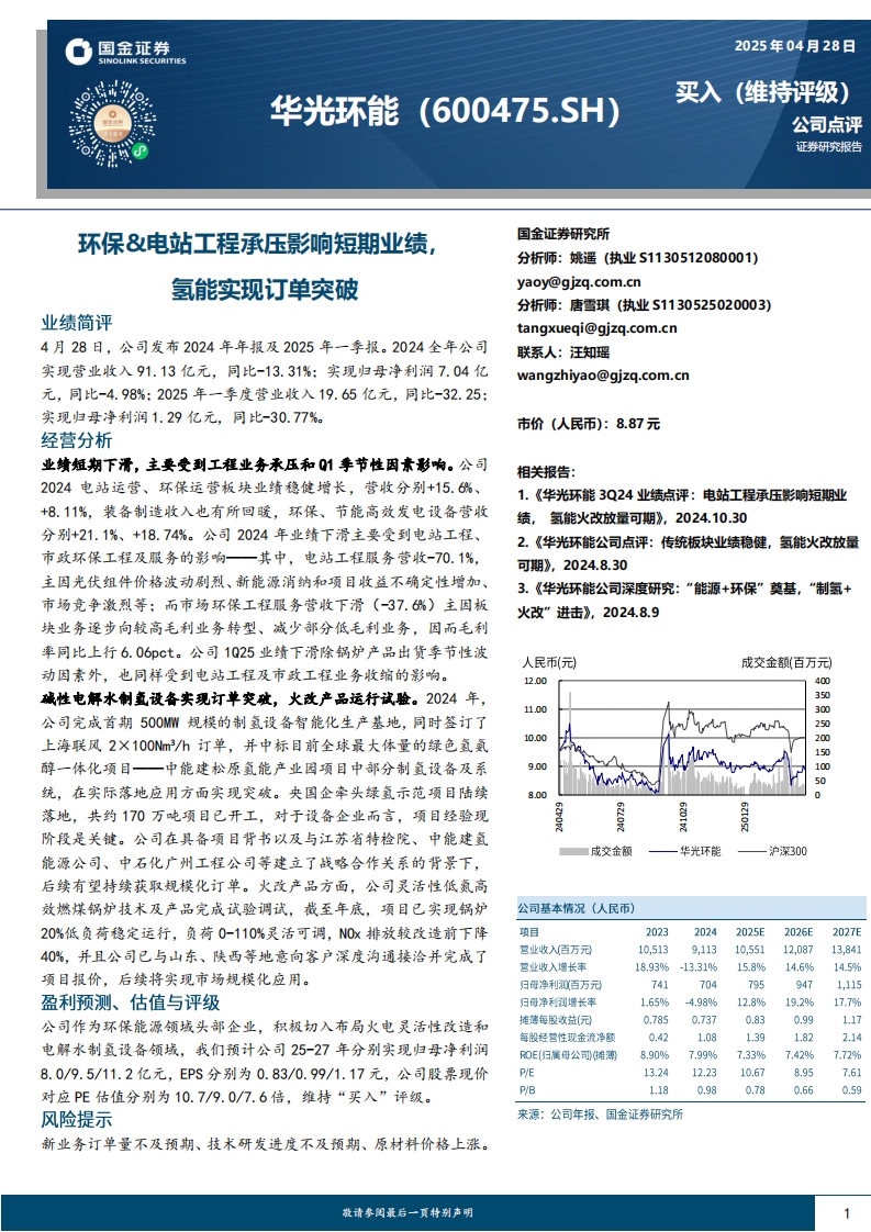 2025-04-29-国金证券-华光环能-环保&电站工程承压影响短期业绩,氢能实现订单突破