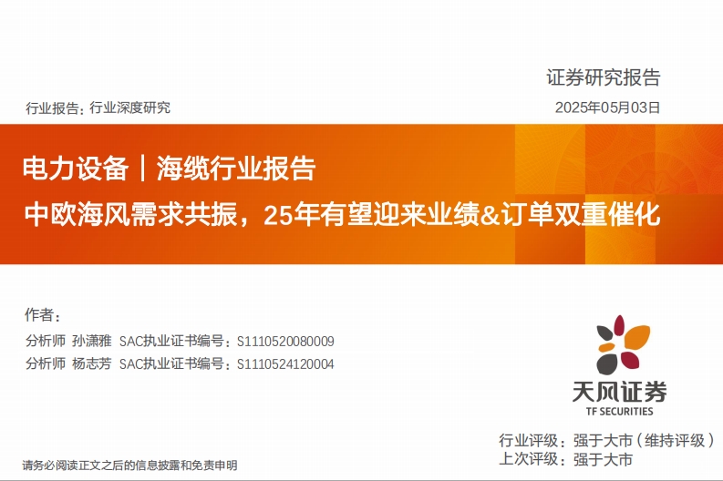 2025-05-05-天风证券-海缆行业报告:中欧海风需求共振,25年有望迎来业绩&订单双重催化