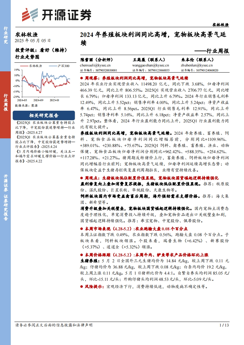 2025-05-05-开源证券--农林牧渔行业周报:2024年养殖板块利润同比高增,宠物板块高景气延续