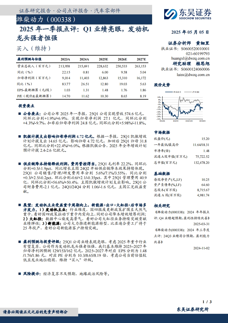 2025-05-06-东吴证券-潍柴动力-2025年一季报点评:Q1业绩亮眼,发动机龙头强者恒强