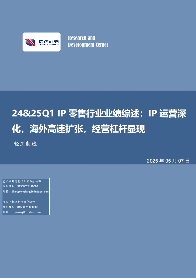 2025-05-07-信达证券--轻工制造行业事项点评:24&25Q1 IP零售行业业绩综述:IP运营深化,海外高速扩张,经营杠杆显现