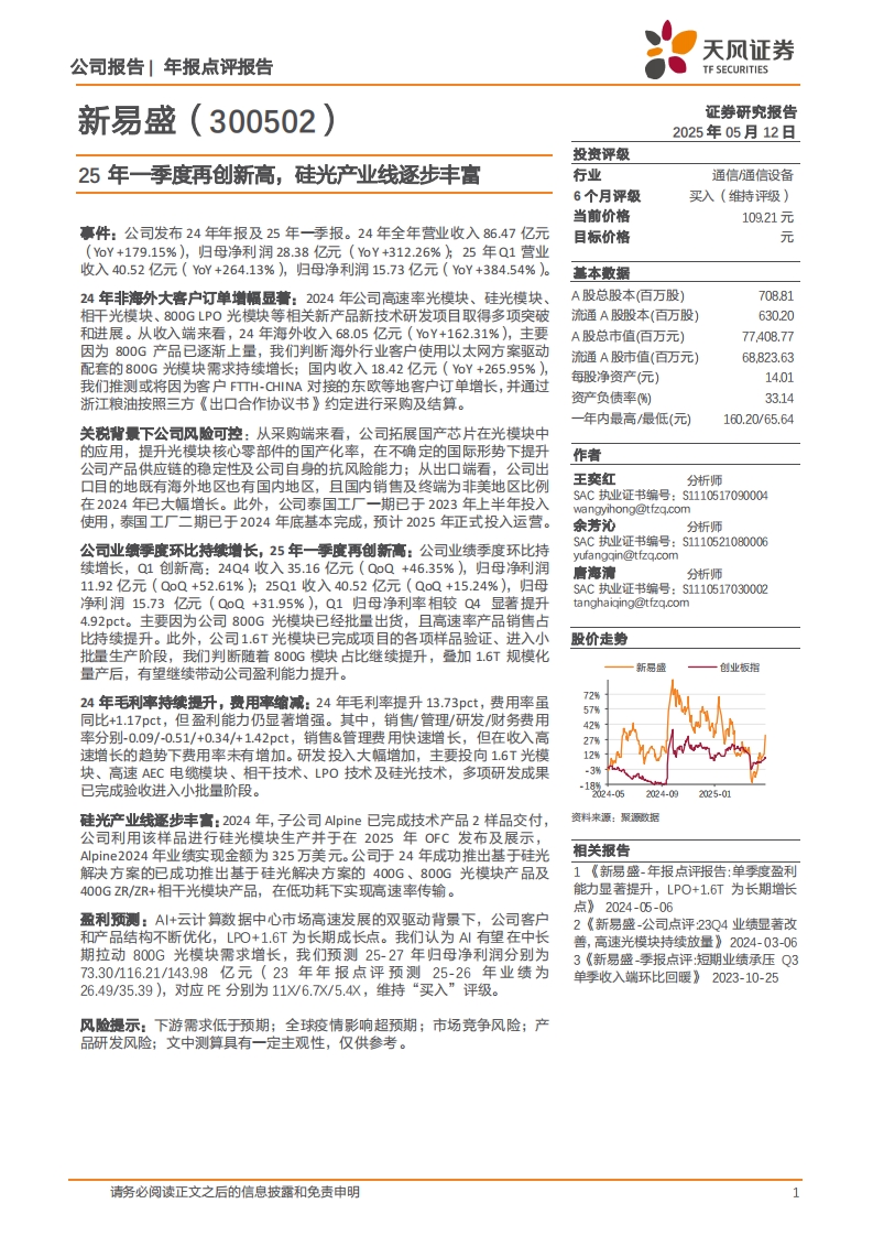 2025-05-12-天风证券-新易盛-25年一季度再创新高,硅光产业线逐步丰富