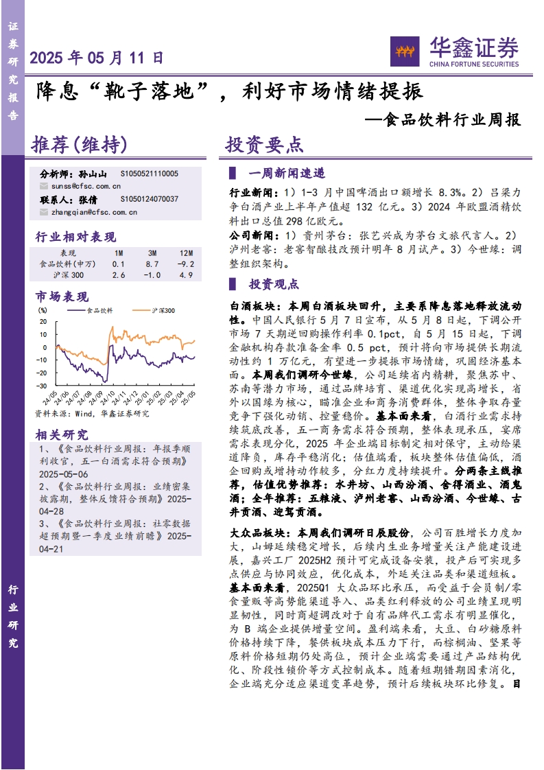 2025-05-11-华鑫证券--食品饮料行业周报:降息“靴子落地”,利好市场情绪提振