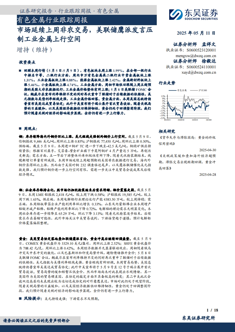 2025-05-11-东吴证券-有色金属行业跟踪周报:市场延续上周非农交易,美联储鹰派发言压制工业金属上行空间