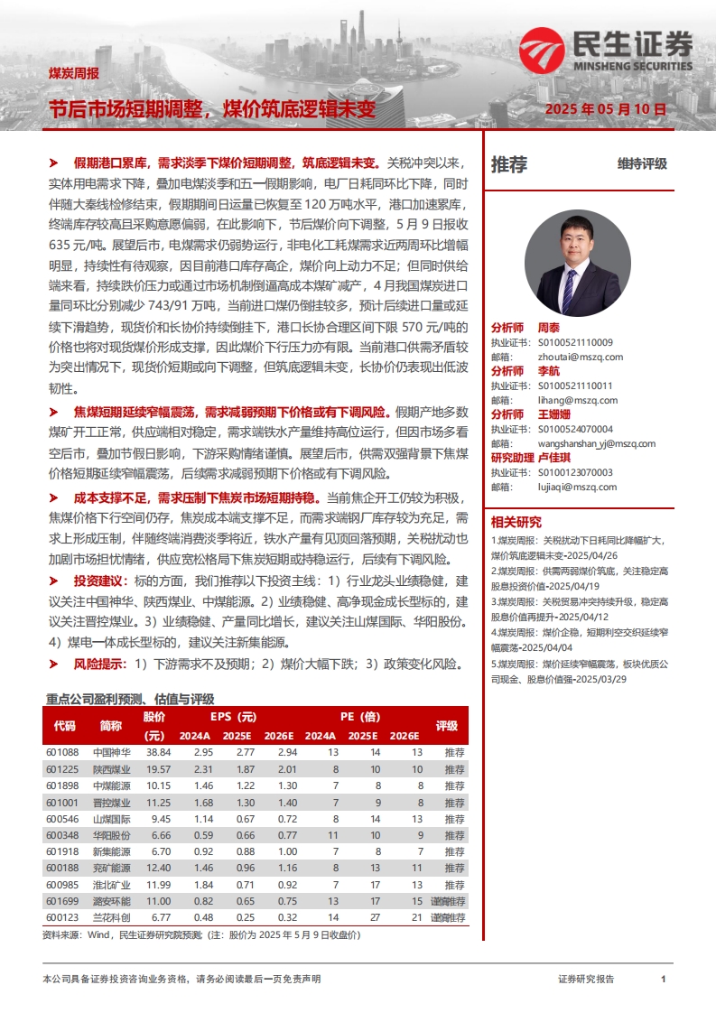 2025-05-10-民生证券--煤炭周报:节后市场短期调整,煤价筑底逻辑未变