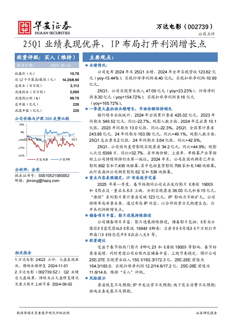 2025-05-15-华安证券-万达电影-25Q1业绩表现优异,IP布局打开利润增长点
