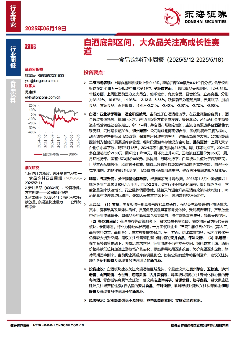 2025-05-19-东海证券--食品饮料行业周报:白酒底部区间,大众品关注高成长性赛道
