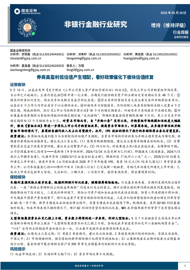 2025-05-19-国金证券-非银行金融行业周报:券商高盈利低估值产生错配,看好政策催化下板块估值修复