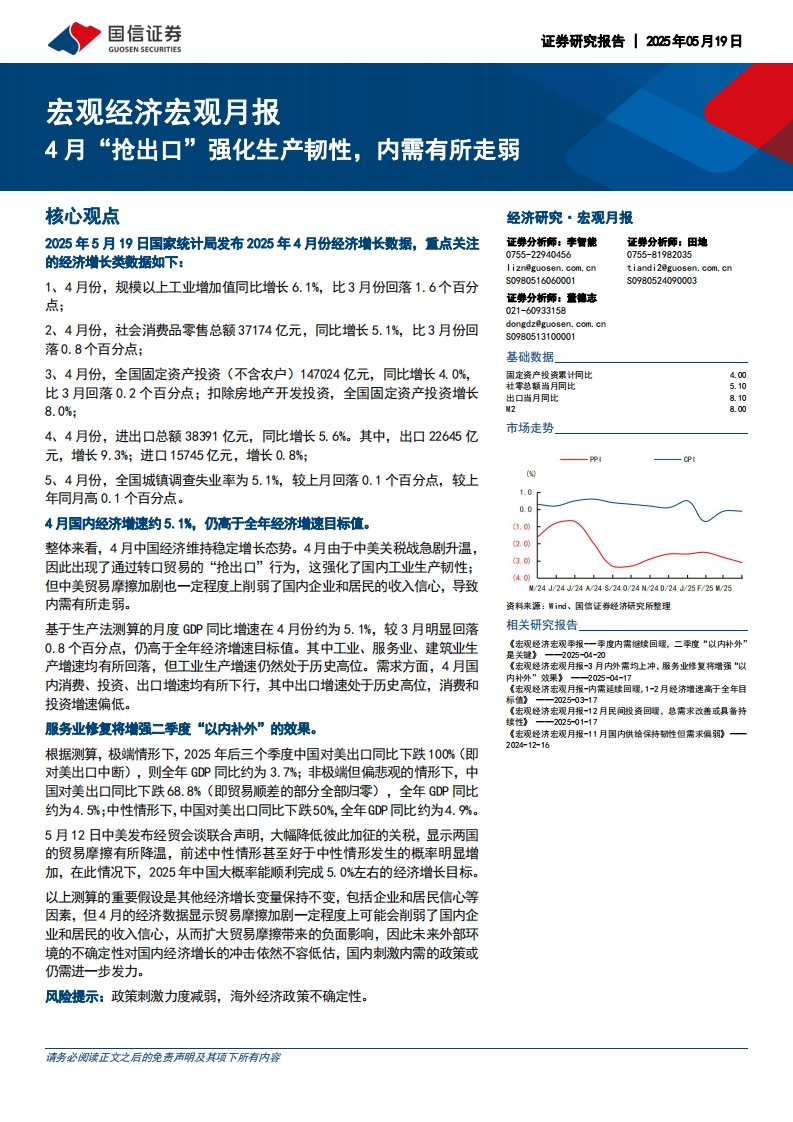 2025-05-19-国信证券-宏观经济宏观月报:4月“抢出口”强化生产韧性,内需有所走弱