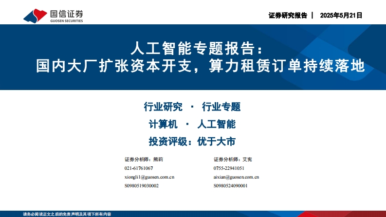 2025-05-21-国信证券--人工智能专题报告:国内大厂扩张资本开支,算力租赁订单持续落地