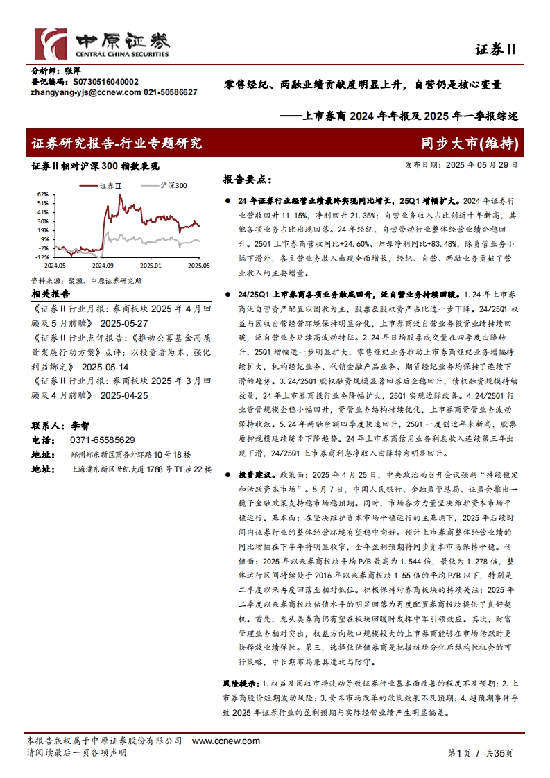 2025-05-30-中原证券--上市券商2024年年报及2025年一季报综述:零售经纪、两融业绩贡献度明显上升,自营仍是核心变量