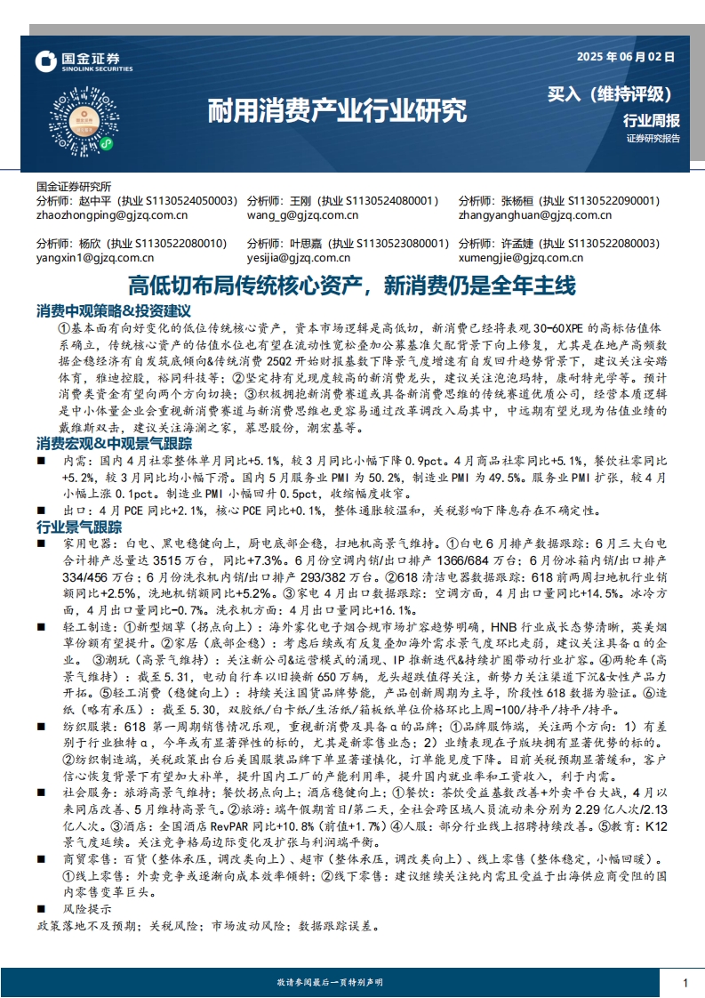 2025-06-03-国金证券--耐用消费产业行业研究:高低切布局传统核心资产,新消费仍是全年主线