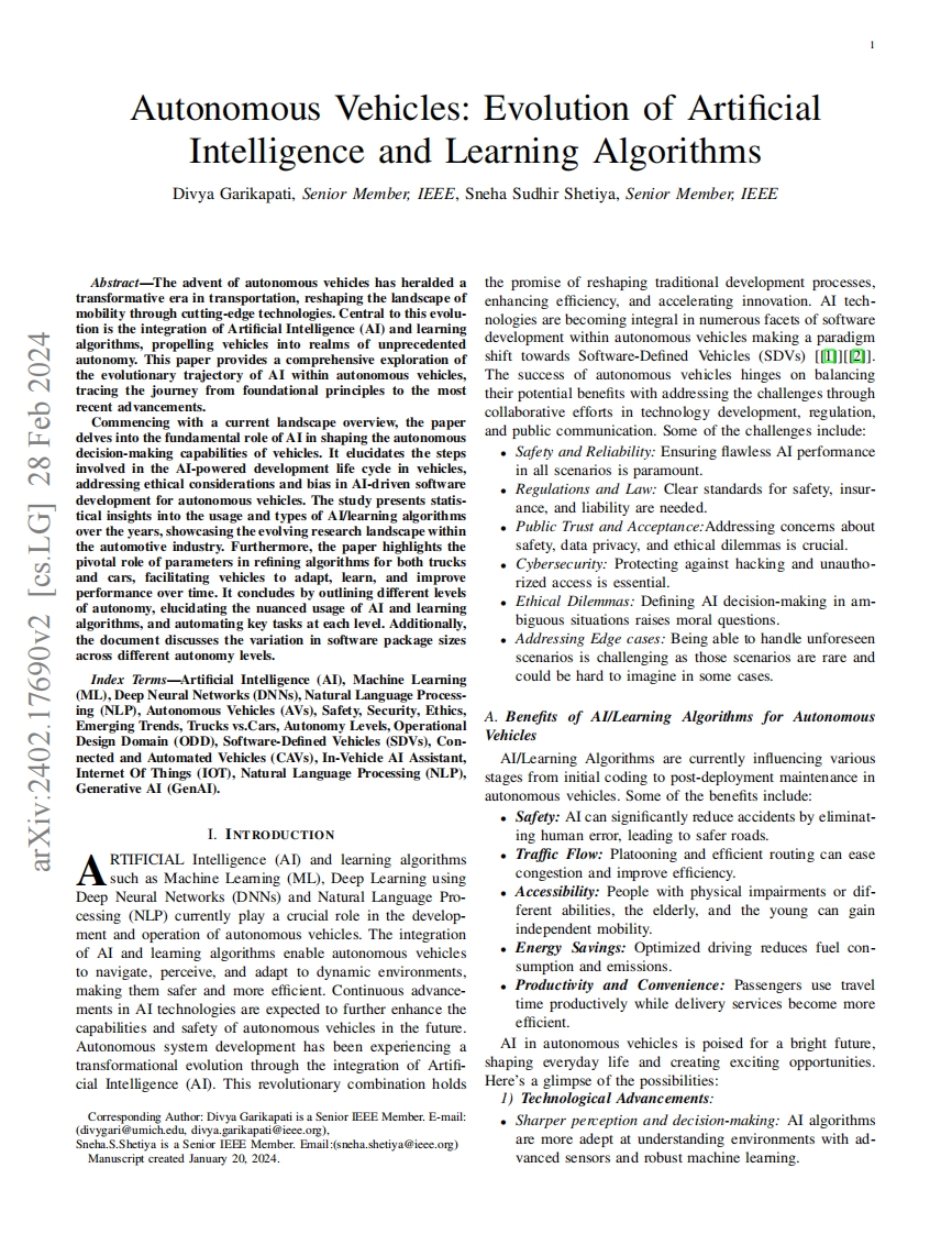 自动驾驶汽车:人工智能与学习算法的进化之旅(2024)