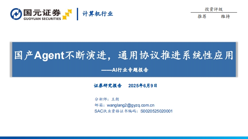 2025-06-09-国元证券--AI行业专题报告:国产Agent不断演进,通用协议推进系统性应用