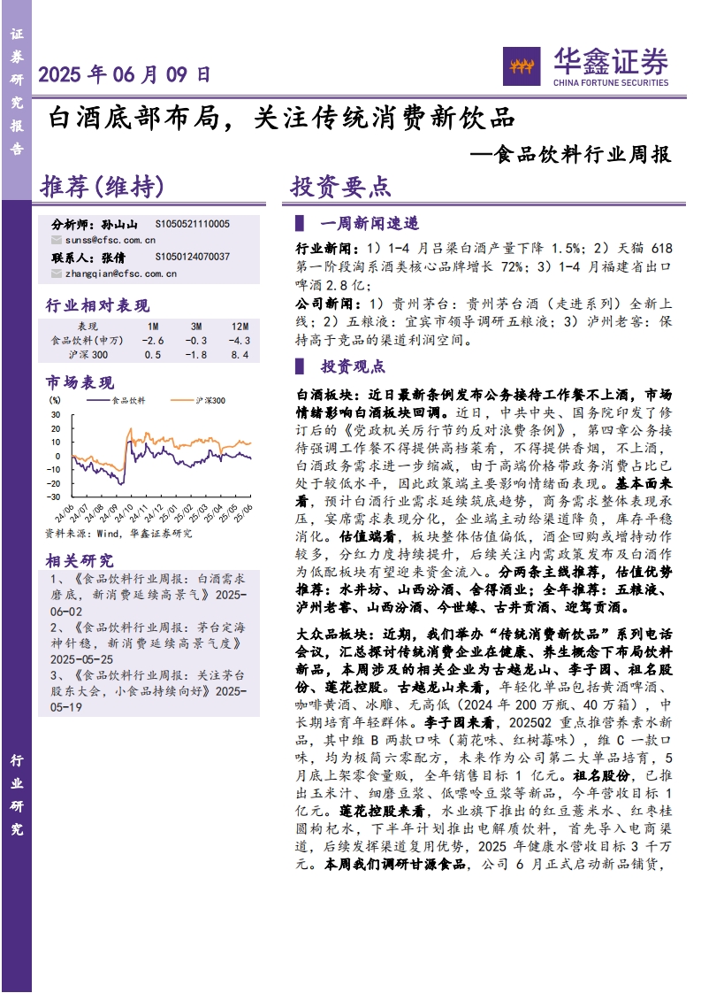 2025-06-09-华鑫证券--食品饮料行业周报:白酒底部布局,关注传统消费新饮品