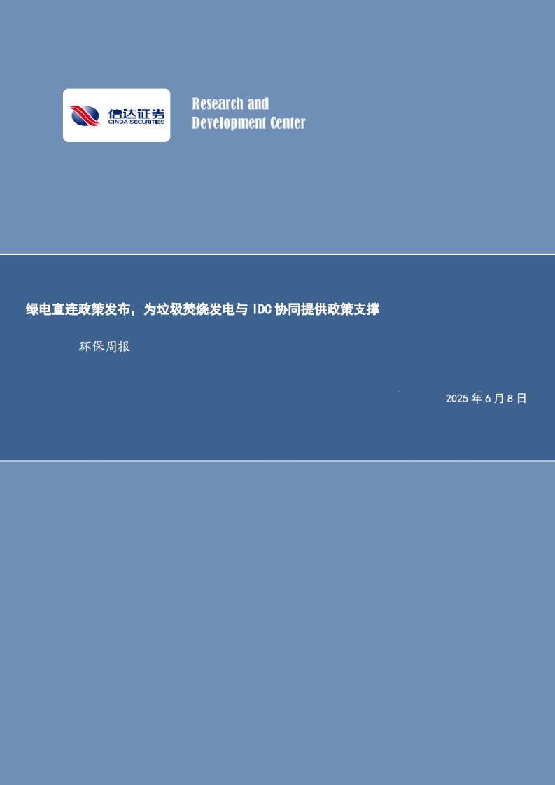 2025-06-08-信达证券--环保周报:绿电直连政策发布,为垃圾焚烧发电与IDC协同提供政策支撑