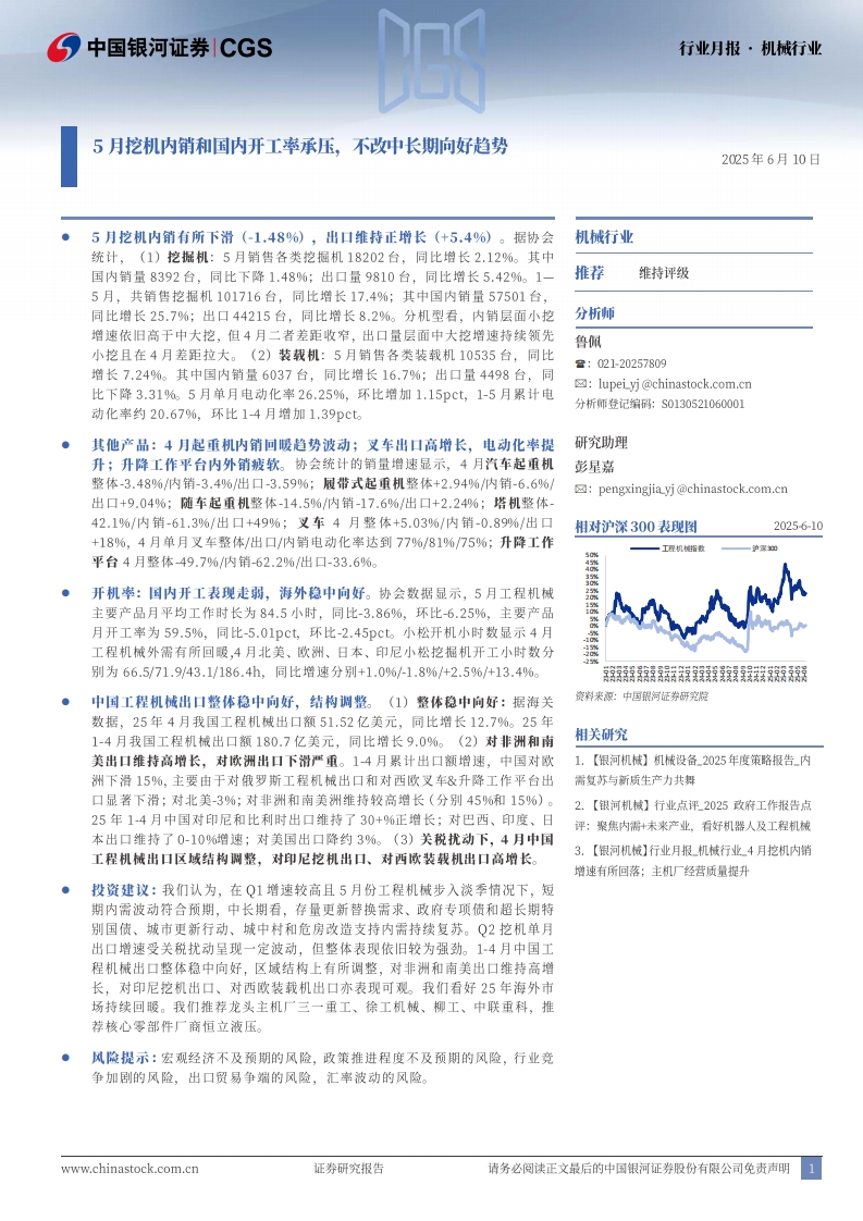 2025-06-11-中国银河--机械行业行业月报:5月挖机内销和国内开工率承压,不改中长期向好趋势
