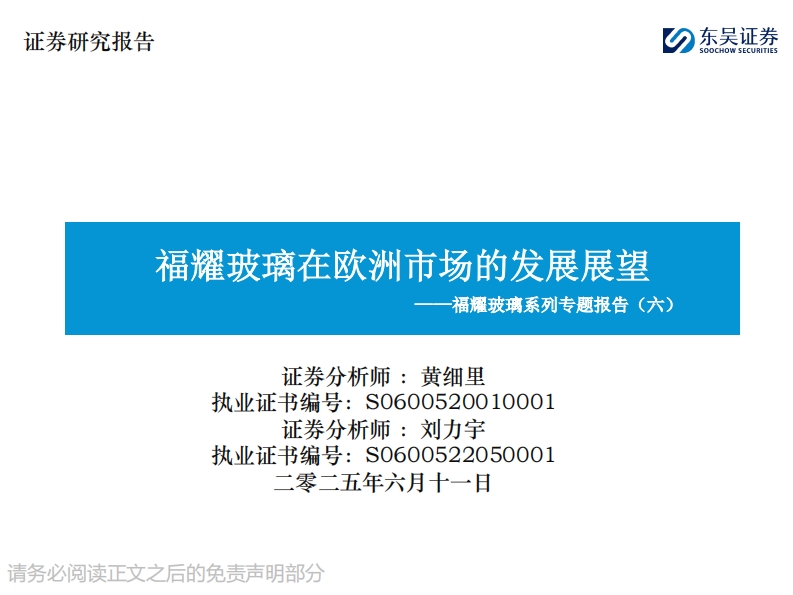 2025-06-11-东吴证券--福耀玻璃系列专题报告(六):福耀玻璃在欧洲市场的发展展望