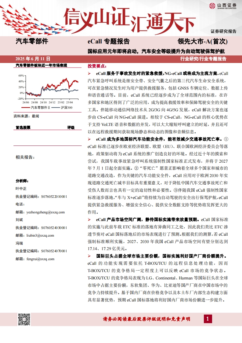 2025-06-11-山西证券-汽车零部件:eCall专题报告-国标应用元年即将启动,汽车安全等级提升为自动驾驶保驾护航