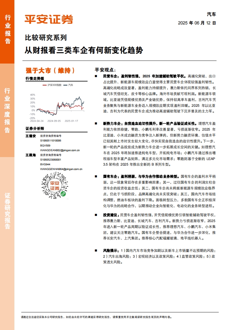 2025-06-12-平安证券--汽车行业比较研究系列:从财报看三类车企有何新变化趋势